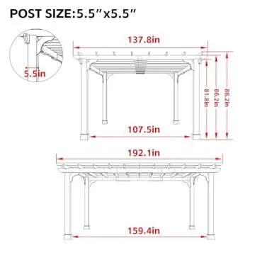 Yardenaler 12 x16 FT Wooden Pergola, Cedar Wood Gazebo with Flat Roof, Outdoor Garden Shelter with Stakes Included, Patio, Deck, Backyard, Lawn