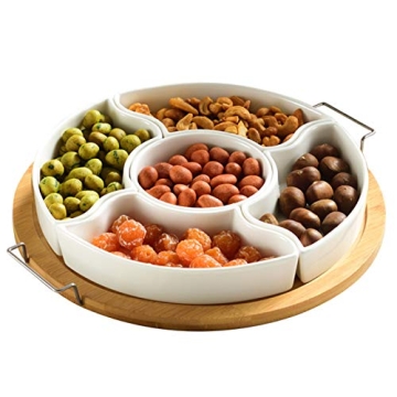Show moreIntroducing the Yarlung 11 Inch Ceramic Divided Serving Dishes, a stunning addition to your dining experience that beautifully blends elegance and functionality. Perfectly designed with a diameter of 10.2 inches and height of 2 inches, this exquisite set includes a chic bamboo platter that measures 11.2 inches in diameter. Crafted meticulously to enhance your hosting capabilities, this set features 5 removable bowls thoughtfully arranged on a stylish round platter. With no lids involved, easy accessibility is ensured for your guests, allowing them to indulge in appetizers without interruption and making each gathering a delightful experience.