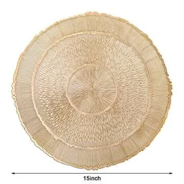 Yarlung 12 Pack Round Pressed Vinyl Placemats, 15 Inch Non-Slip Metallic Gold Table Decor Mat Hollow Out Laminated Place Mats for Christmas Decor, Wedding Accent, Table Centerpiece