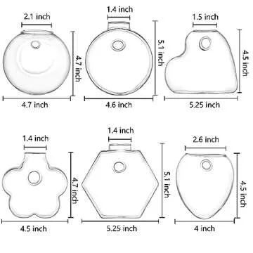 Show more Discover the stylish appeal of the Yarlung Value Set of 6 Glass Planters, the perfect addition to any home decor! Each planter features a unique oblate shape, crafted from high boron silicon heat-resistant glass, ensuring both durability and elegance. These sleek, clear globe pots not only enhance the aesthetic of your space but also provide a functional and modern solution for plant lovers. Ranging in sizes from 4 to 5.25 inches in width and heights from 4.5 to 5.1 inches, these planters are versatile enough to display a variety of plants, although it’s important to note that plants and decorations are not included.