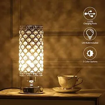 Yarra-Decor Crystal Bedside Table Lamp 3 Color Options Lamps for Bedroom Modern USB Nightstand Lamp with Silver Crystal Shade Decorative Lamps for Living Room, Kids Room(LED Bulb Included)