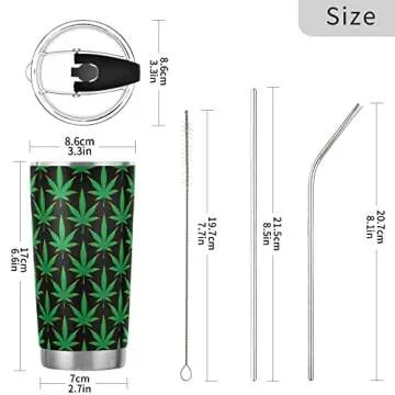 Yasala Tumbler Green Marijuana Leaves Insulated Coffee Cup Beverage Container Travel Mug with Straw and Lid Double Wall Stainless Steel 20oz Office, Back to School
