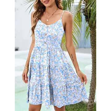Show more Introducing the YATHON 2024 Women's Casual Summer Tiered Knee Length Dress, an exquisite blend of comfort, style, and versatility! This boho sundress is designed with a flattering tiered ruffle hem that beautifully drapes around your body, giving you an effortlessly chic look for any summer occasion. Crafted from soft and breathable cotton, this dress not only feels great against your skin but also provides a lovely silhouette that accentuates your curves while cleverly concealing any insecurities. The decorative button design adds a touch of class, making it perfect for both casual outings and special events.