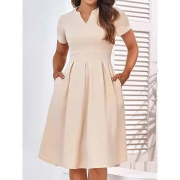 Show more Introducing the YATHON Casual Summer Dresses 2024, a perfect blend of style and practicality that will quickly become your go-to choice for any special occasion. This beautiful vintage-inspired swing dress features an elegant notched neck and hidden side pockets, making it both fashionable and functional. Constructed with soft, high-quality fabric, this knee-length dress is designed to enhance your curves while providing ultimate comfort throughout the day. The vibrant Apricot color and chic styling ensure you stand out in any setting, from casual outings to formal events.