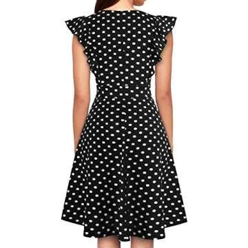YATHON Women's Vintage Ruffle Floral Flared A Line Swing Casual Cocktail Party Dresses (S, YT001-Black Dot)