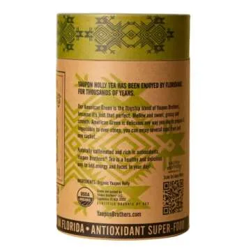 Yaupon Brothers American Green Yaupon Tea - 16 Eco-Friendly Organic Green Tea Bags Crafted from Antioxidant Rich Yaupon Organic Leaves - Caffeinated in Fiber Bags