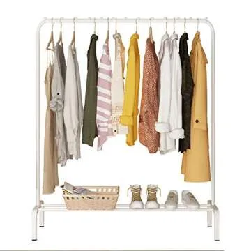 YAYI Clothes Rack Clothes Rail Metal Garment Rack Clothes Hanger Stand with Top Rod and Lower Storage,White