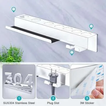 YAYINLI Hair Dryer Holder, Wall Mounted Blow Dryer Holder, Blow Dryer and Curling Iron Holder for 7 in 1 Styler Attachments, Adhesive Straightener Holder, Hair Tools Organizer Storage for Bathroom