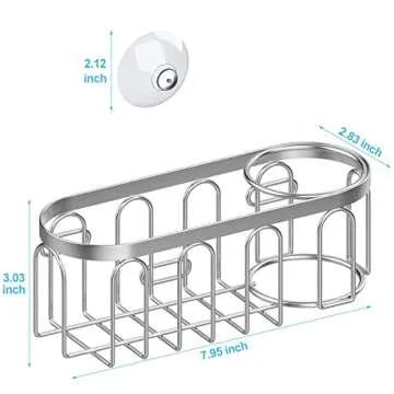 Yazoni 2-in-1 Sponge Holder for Kitchen Sink, Suction Cup Rack/Caddy, No Drill Rustproof Organizer for Place Dishwashing Brush Soap (Silver)