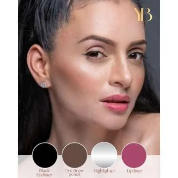 YazzBeauty 4-in-1 Touch-Up Makeup Pen (Berry) - Medium Brown Eyebrow Pencil, a Berry Lip Liner, a Black Eyeliner, and a White Shimmer Highlighter – Ideal for Travel