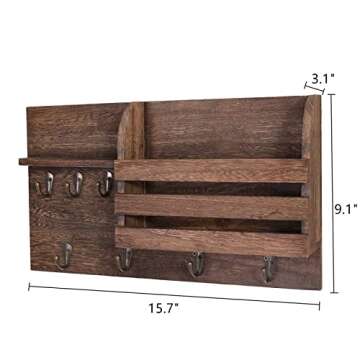 Show more Discover the perfect blend of style and functionality with the YCOCO Key Holder for Wall. This rustic wooden key rack organizer serves as an essential piece for your home, designed to enhance your entryway while providing outstanding storage solutions. Made from high-quality solid wood and featuring durable solid metal hooks, this organizer boasts longevity and resilience. Measuring at 15.7” W x 3.1” D x 9.1” H (40cm x 8cm x 23cm), it perfectly fits in any narrow space, allowing you to utilize your walls efficiently. The YCOCO key holder seamlessly combines practical organization with elegant decor, ensuring your home remains both stylish and clutter-free.