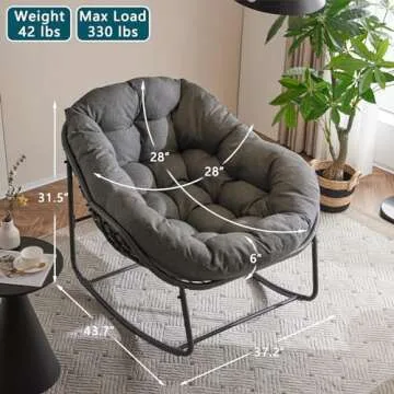 Show moreIndulge in the ultimate relaxation experience with the YDcosyfy Papasan Rocking Chair. Designed to elevate your comfort, this oversized wicker lounge chair features an upgraded steel frame that ensures a firm and stable structure, accommodating up to 330 pounds effortlessly. Say goodbye to cumbersome assembly processes—our innovative design means you can enjoy your chair with less hassle. The elegant grey color seamlessly blends into various decorative styles, making it a beautiful addition to your living space or patio.