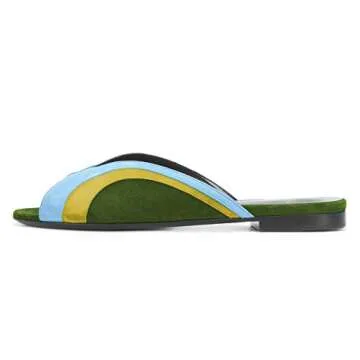 YDN Women Peep Toe Low Heel Mules Sandals Slip on Slipper Slide Clogs Shoes Color B 4