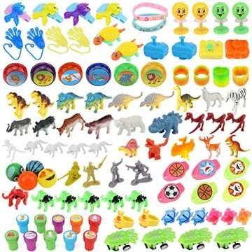 - Variety of Toys: Includes dinosaurs, cars, spin tops, stamps, and much more!