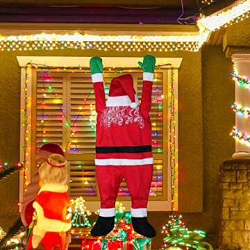YEAHBEER 4.92 FT Christmas Hanging Santa Claus,Christmas Outdoor Decoration for Gutter or Roof/Chimney/Tree/Porch