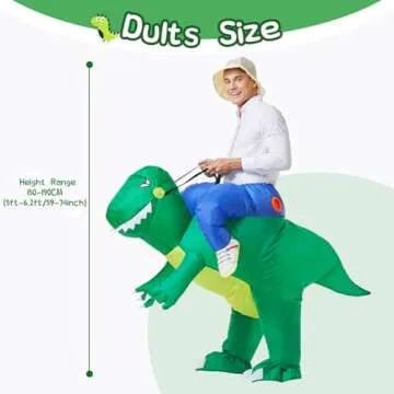 Show moreUnleash your wild side with the YEAHBEER Inflatable Dinosaur Costume for Adults! This hilarious costume transforms you into a majestic T-Rex, perfect for bringing laughter and excitement to any gathering. Crafted from 100% premium polyester, this inflatable suit offers exceptional durability and comfort, allowing you to revel in your festivities without the worry of rips or tears. Each costume is meticulously inspected prior to shipping to ensure it reaches you in perfect condition. Experience the joy of becoming the center of attention at your next event with this uniquely designed inflatable costume that guarantees smiles and unforgettable moments!
