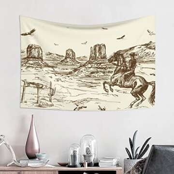 YEAHSPACE Western Tapestry 40x60 Inches Cowboy Tapestry for Bedroom Aesthetic Wall Hanging Wall Blanket-American Cowboy Riding Horse in Wild West eagle
