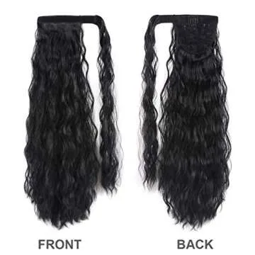 YEAME Corn Wave Ponytail Extension Clip in - 22 Inch Long Wavy Curly Wrap Around Pony Tail Heat Resistant Synthetic Hairpiece for Women (Natural Black #1B)