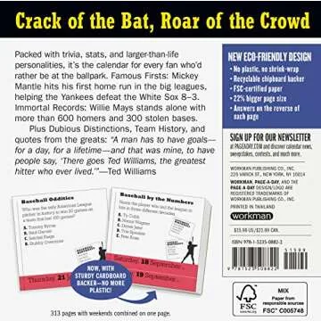 This calendar is not just a timekeeping tool but rather a daily dose of fun and knowledge tailored for every baseball enthusiast. With its vibrant imagery and informative content, each page serves as a mini-booklet packed with trivia that ignites conversations and inspires memories among friends, family, and co-workers. It has become a beloved staple on desks and in homes, making every day a little more delightful for fans of America’s pastime.