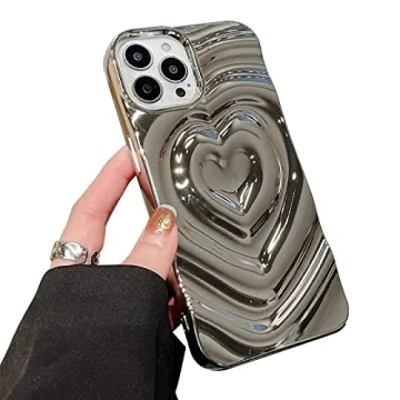 Show more Indulge in the perfect blend of style and functionality with the Yebowe Luxury 3D Heart Case for iPhone 13 Pro Max. This exquisite phone case is a fashion statement, showcasing a stunning 3D stereoscopic heart design that instantly elevates your device's appearance while ensuring protection against everyday wear and tear. Created specifically for the iPhone 13 Pro Max, this case not only fits perfectly but also enhances the look of your phone with its sleek, water ripple silver electroplating. The soft silicone material wraps around your phone snugly, providing a comfortable grip and a chic aesthetic, appealing especially to fashion-conscious users.