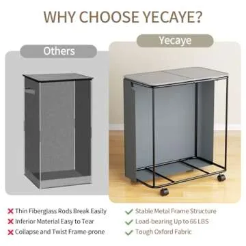 Yecaye 150L Laundry Hamper with Wheels, Rolling Laundry Basket with Lid and 2 Removable Laundry Bag, Large Capacity 2 Section Clothes Hampers for Laundry Room, Bedroom, Bathroom, Dorm, Grey