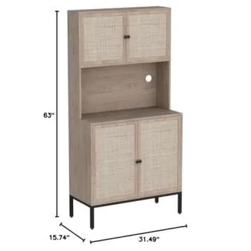 Yechen Storage Cabinet with Natural Handmade Rattan Wicker Doors, Freestanding Sideboard with Large Countertop, Kitchen Buffet (Natural Color)