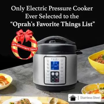 Show more Introducing the Yedi 9-in-1 Total Package Pressure Cooker, a revolutionary kitchen appliance celebrated for its versatility and efficiency, proudly featured in Oprah’s Favorite Things list. This innovative cooker encompasses the functionality of 9 distinct appliances all in one, enabling you to pressure cook, slow cook, sauté, steam, and even bake cakes with remarkable ease. With its sleek design suitable for any kitchen, the Yedi is perfect for both experienced chefs and novice cooks alike.