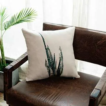 YeeJu Set of 4 Throw Pillow Covers Decorative Green Fern Leaf Cushion Covers Square Cotton Linen Outdoor Couch Sofa Home Pillow Covers 16x16 Inch