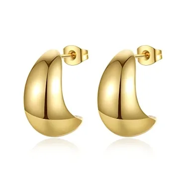 YeGieonr Chunky Gold Hoop Earrings for Women, Lightweight Stainless Steel Teardrop Open Hoops with 18K Real Gold Plated, Hypoallergenic Earrings Trendy Jewelry for Women