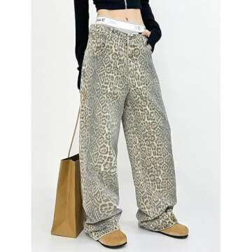 YELLOOP Leopard Print Jeans Y2k Jeans Leopard Jeans Grunge Y2k Pants Womens Baggy Jeans 2000s Leopard Pants (Light,M,Medium)