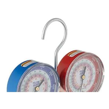 Show moreThe Yellow Jacket 42001 Manifold is an essential tool for HVAC professionals and DIY enthusiasts looking for accurate refrigerant measurements. Featuring precision 3-1/8-inch color-coded gauges, this manifold is compatible with R-22, R-404A, and R-410A refrigerants, making it versatile for various applications. A durable clamshell design ensures that the gauges remain protected while providing visibility for efficient reading. Weighing only 2.35 pounds, it is lightweight yet sturdy, allowing easy handling and transportation, complemented by dimensions measuring 9.5 inches in length, 3 inches in height, and 8.4 inches in width. Made in China, the Yellow Jacket brand symbolizes reliability and performance in HVAC tools, making this manifold a trusted choice for professionals across the industry.