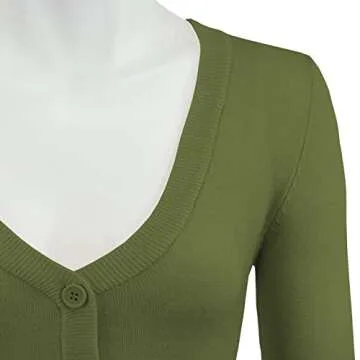 YEMAK Women's Cropped Bolero Cardigan – 3/4 Sleeve V-Neck Basic Classic Casual Button Down Knit Soft Sweater Top CO129-SAG-S Sage