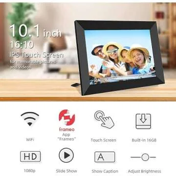 YENOCK FRAMEO Digital Photo Frame WiFi 10.1 Inch HD IPS LCD Touch Screen, 16GB Memory, Auto-Rotate, Wall-Mountable, Easy Setup to Share Photos & Videos via Free App from Anywhere