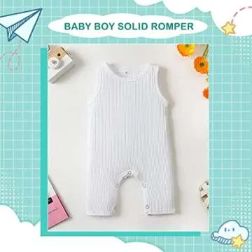 Show more If you're searching for the perfect outfit for your little one, look no further than the YENTAKE Newborn Baby Boy Girl Romper. This infant sleeveless bodysuit offers the ideal blend of softness and stretch, tailored specifically for your baby's delicate skin. Made from a high-quality cotton blend, it's both breathable and durable, ensuring that your newborn stays comfortable throughout the day. With its simple solid color design and cute button detailing on the legs, this romper is as fashionable as it is functional, making dressing and diaper changes a breeze.