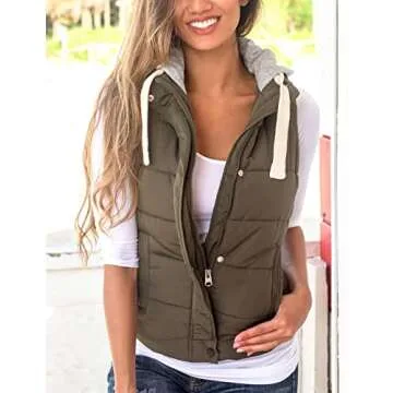 Yeokou Women's Slim Sleeveless Quilted Removable Hooded Winter Puffer Vest Coat(Army Green-M)