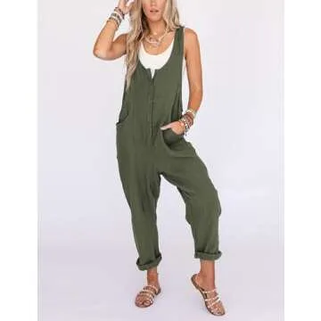 Yeokou Womens Overalls Linen Cotton Jumpsuits Loose Casual Jumpers with Pockets