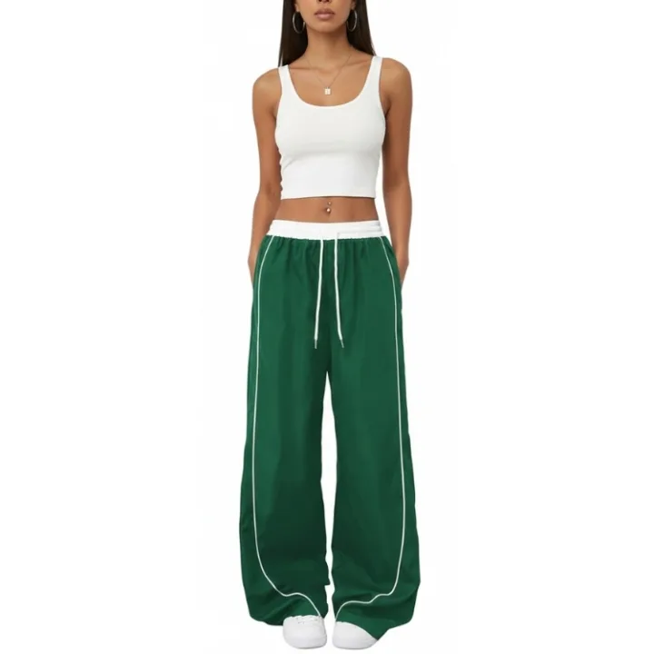 Show moreEmbrace the Y2K trend with Yeokou’s parachute pants. Featuring a drawstring waist, colorblock side stripes, and an oversized, relaxed fit, these pants are perfect for a casual, sporty style.
