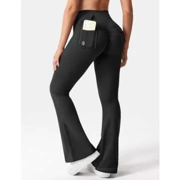 YEOREO Flare Leggings with Pockets for Women Brittany Leggings Workout Leggings for Women Butt Lifting Gym Yoga Leggings Black