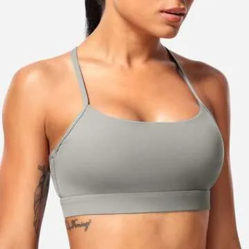 YEOREO Naomi Backless Sports Bra for Women Y Back Strappy Yoga Bra Padded Low Impact Workout Crop Tank Tops Grey M