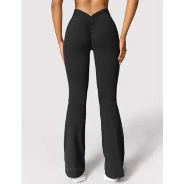 YEOREO Scrunch Flare Leggings Daze V Back Butt Lifting Wide Leg High Waist 31.5" Gym Workout Yoga Pants Black S