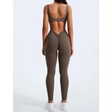 YEOREO Sleeveless Jumpsuits for Women Sexy Backless Gym Bodycon Lizvette V Back Scrunch Butt Rompers Coffee XS