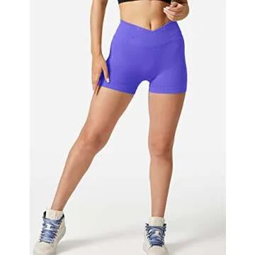 YEOREO Women’s Cross Waist Seamless Workout Shorts – High Waisted & Stylish Purple S
