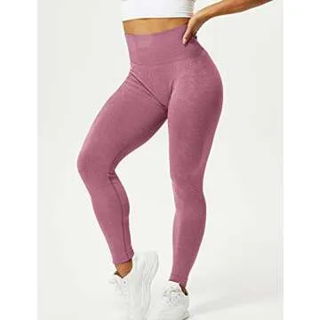 YEOREO Women High Waist Workout Gym Smile Contour Seamless Leggings Yoga Pants Tights Pink S