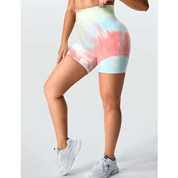 YEOREO Women High Waist Workout Yoga Gym Smile Contour Seamless Cycling Shorts Green Pink S