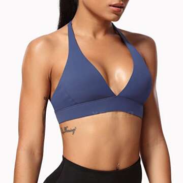 Show more Elevate your workout wardrobe with the YEOREO Women Open Back Sports Bra, designed not only for athletic performance but also for style. This navy blue bra features a stunning criss-cross strappy design that provides both support and flair. With its padded cups, you'll enjoy reliable coverage as you take on yoga sessions, runs, or gym workouts. The open back adds a touch of sexiness while ensuring breathability—keeping you cool and comfortable even during the most intense workouts. Made from a lightweight, moisture-wicking fabric, this sports bra ensures maximum comfort and flexibility, allowing unrestricted movement for any exercise discipline.