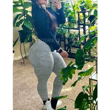 YEOREO Women's Seamless Camo Workout Leggings High Waisted Tummy Control Yoga Pants Gym Compression Tights Grey M