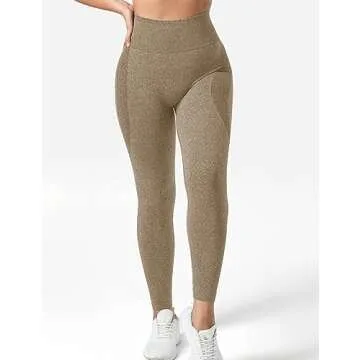 YEOREO Women Seamless Workout Leggings Gym High Waist Smile Contour Yoga Pants Mocha