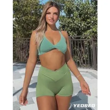 Show moreThe YEOREO Scrunch Butt Workout Shorts are your ultimate go-to for elevating both your workout and daily style. Designed with a seamless fit in mind, these high-waisted biker shorts incorporate a v cut cross waistband that adds a touch of fashion to functionality. With a focus on both aesthetics and performance, these shorts feature a unique back scrunch seam detail that not only enhances your curves but also provides that much-desired boost to your confidence. Crafted from a high-quality, stretchy knit fabric, these shorts offer a 3.5 inch inseam which is perfect for intense gym sessions or casual outings.