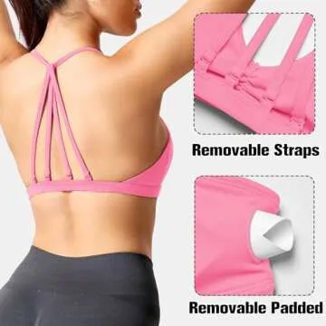 YEOREO Workout Sports Bras for Women Padded Strappy Open Back Gym Bra Light Impact Criss Cross Yoga Crop Top Candy Powder XS