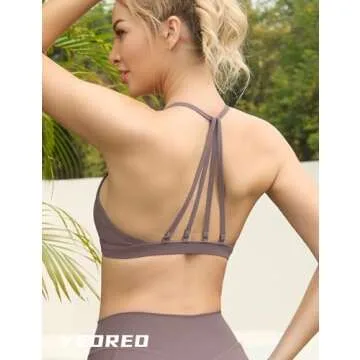The YEOREO Lorelie sports bras are not just functional but also exude a chic aura with their sexy v-neck and scrunch front design. The removable pads cater to personal preference, while the light support and medium compression ensure that you feel secure without feeling constrained. Whether you're hitting the gym or enjoying a casual day out, these bras will keep you looking fabulous.